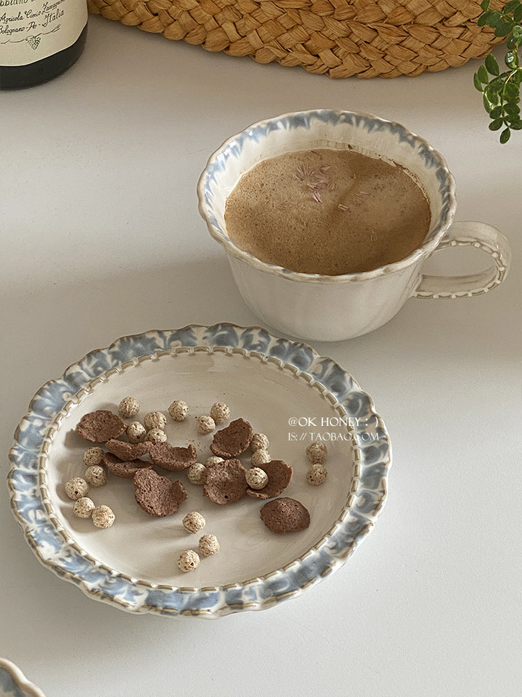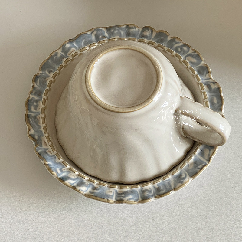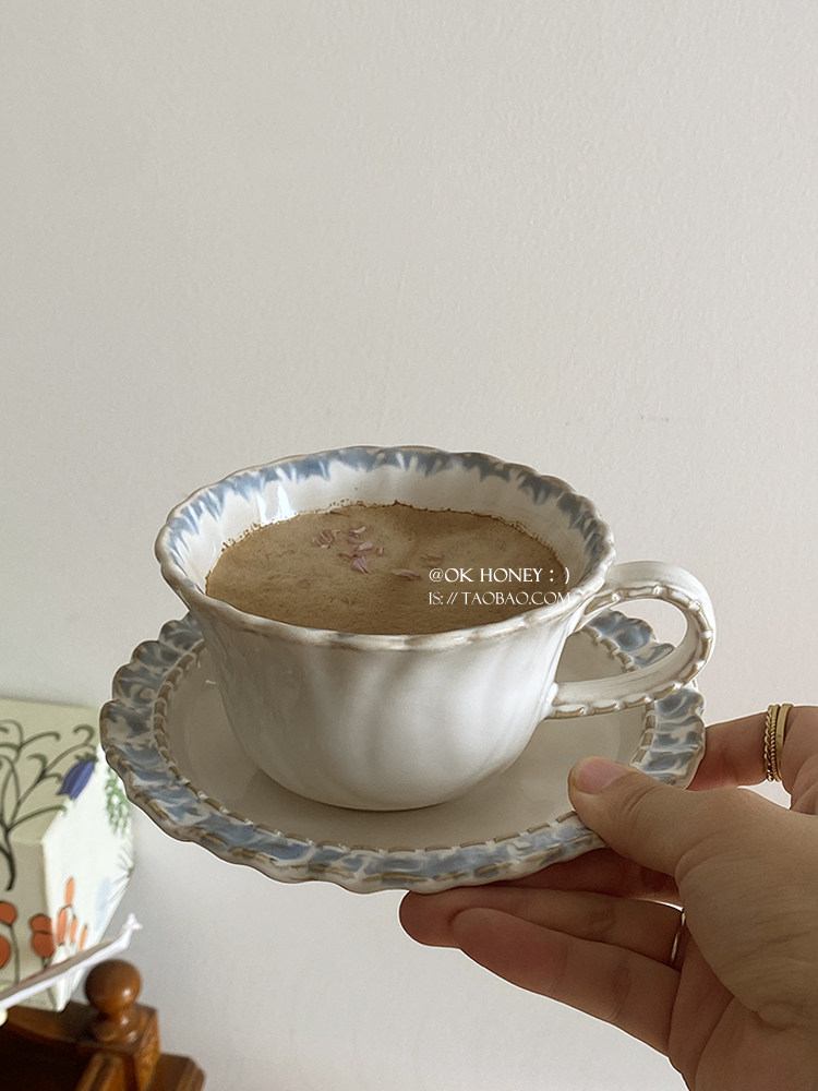 (特)宫廷风烟蓝系列下午茶陶瓷咖啡杯碟有格调红茶咖啡牛奶杯子