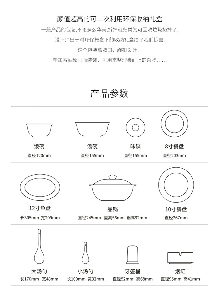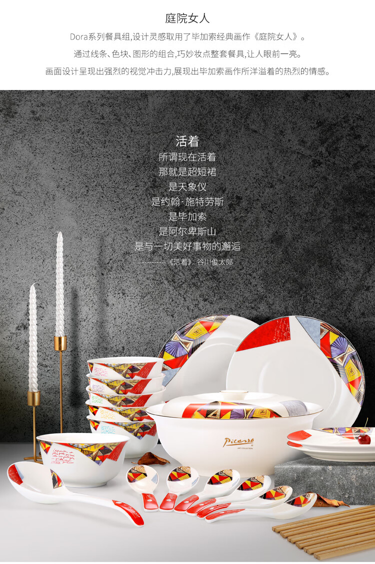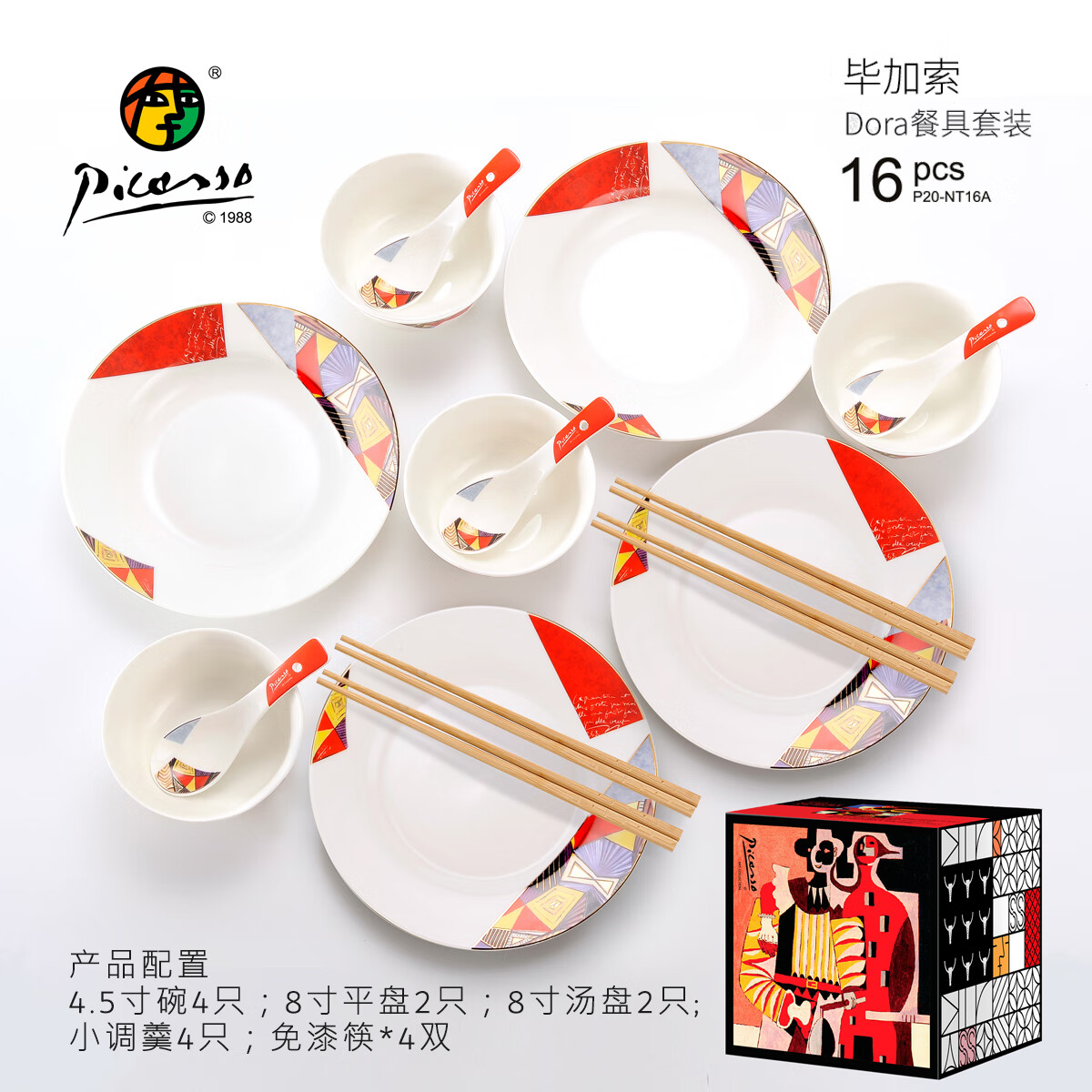(特)Picasso毕加索碗碟套装景德镇网红ins简约创意北欧碗盘子碗筷陶瓷餐具 毕加索《朵拉》艺术餐具16件套