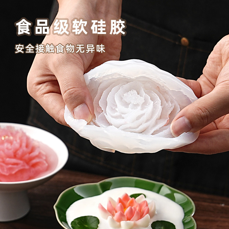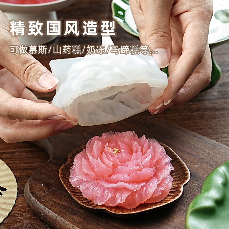 (特)立体牡丹冰块模具荷花奶冻布丁慕斯食品级硅胶翻糖手工皂摆件烘焙