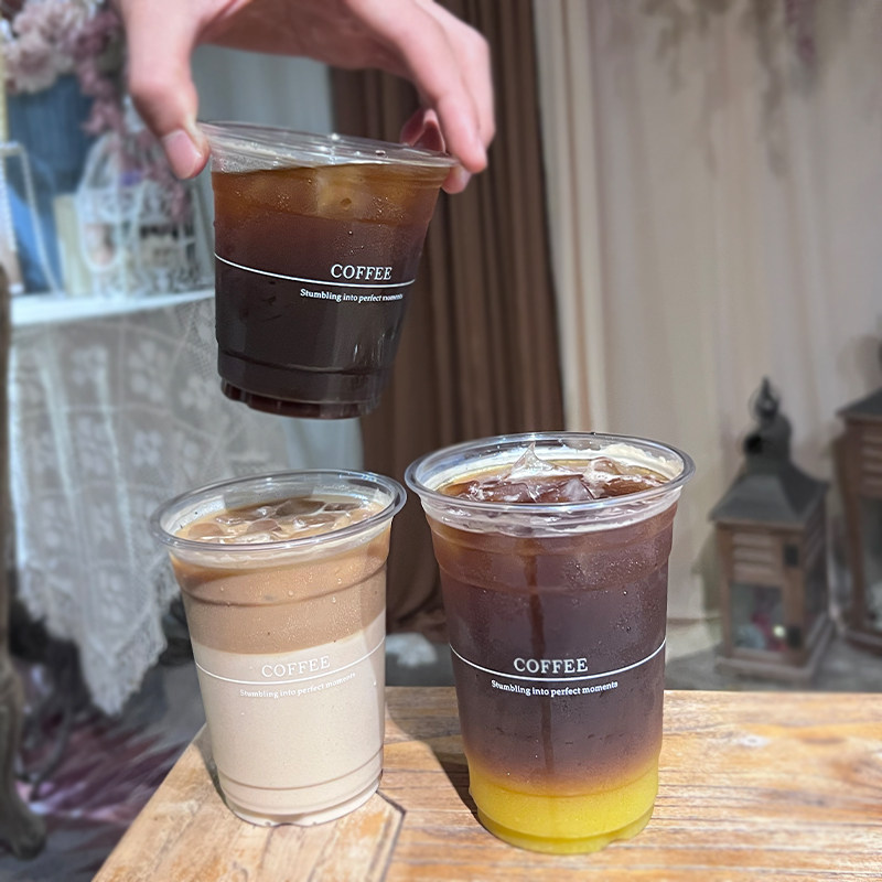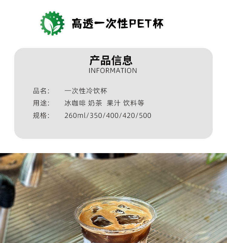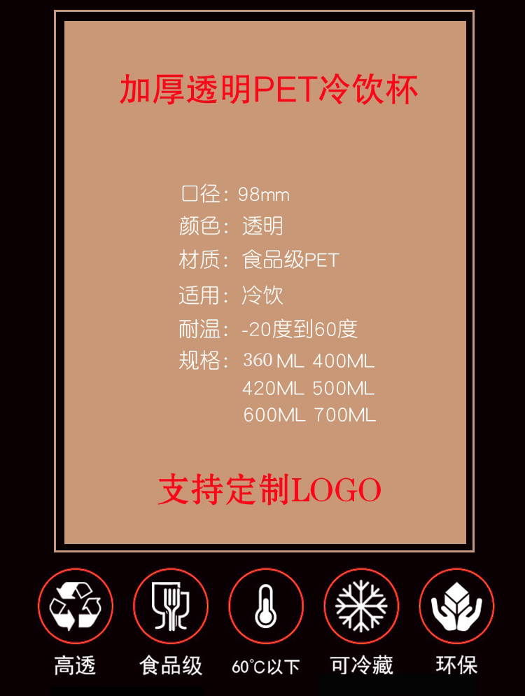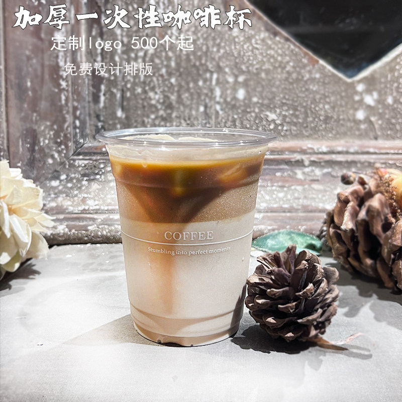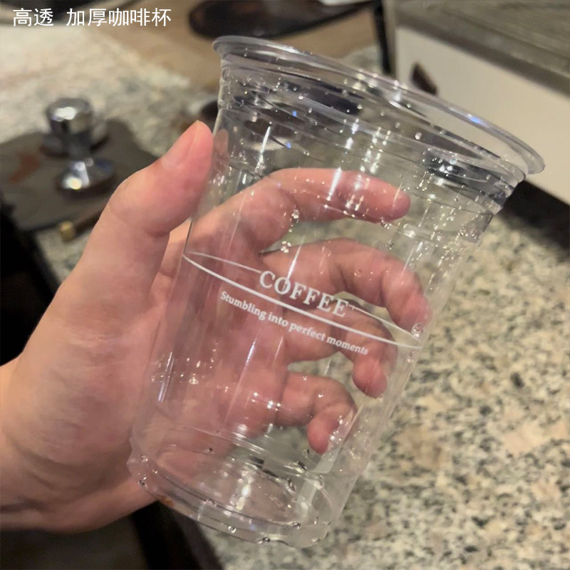 (特)一次性咖啡杯pet冷饮加厚高透拿铁美式商用带盖外带打包