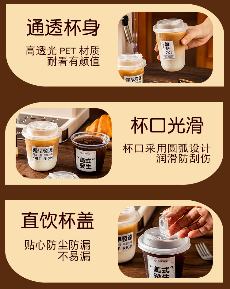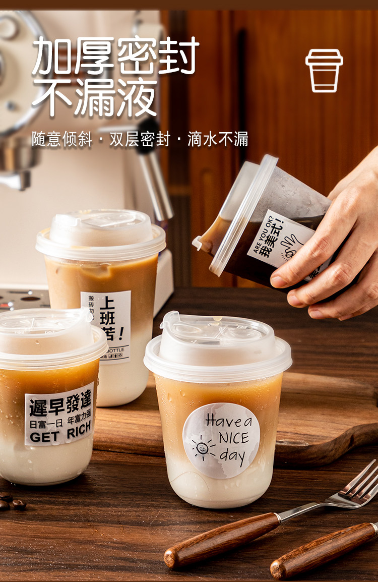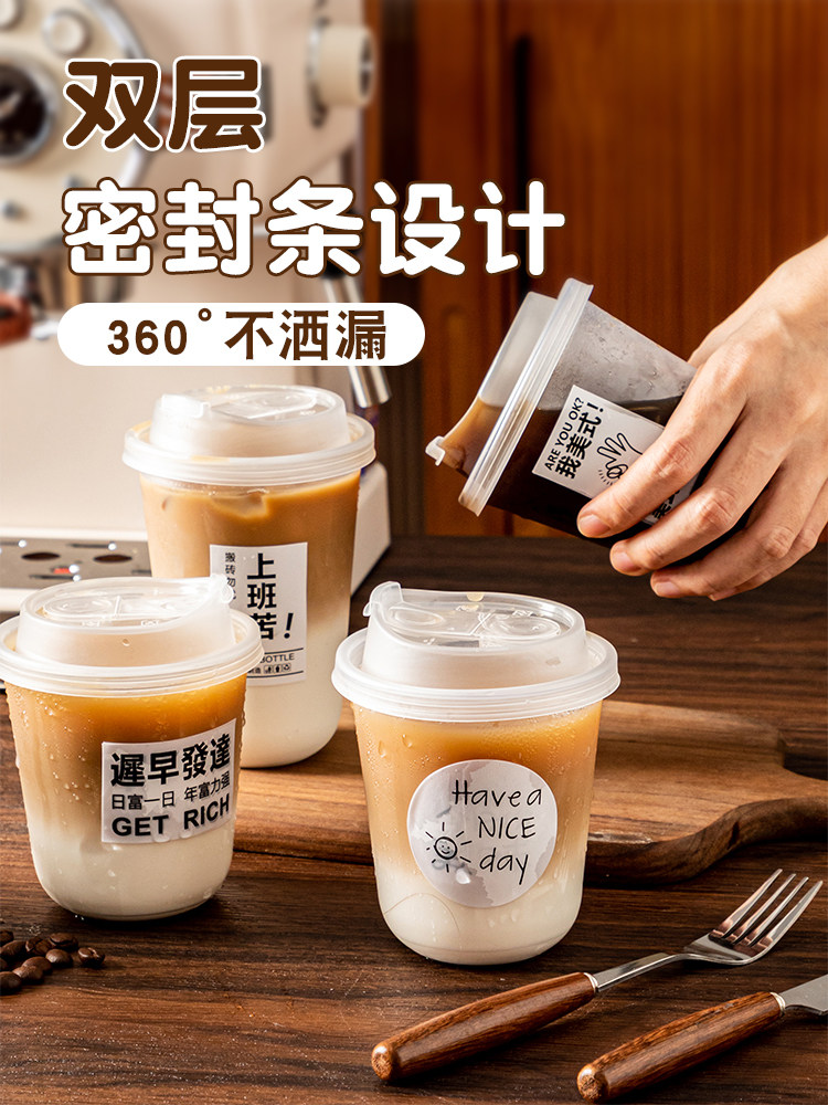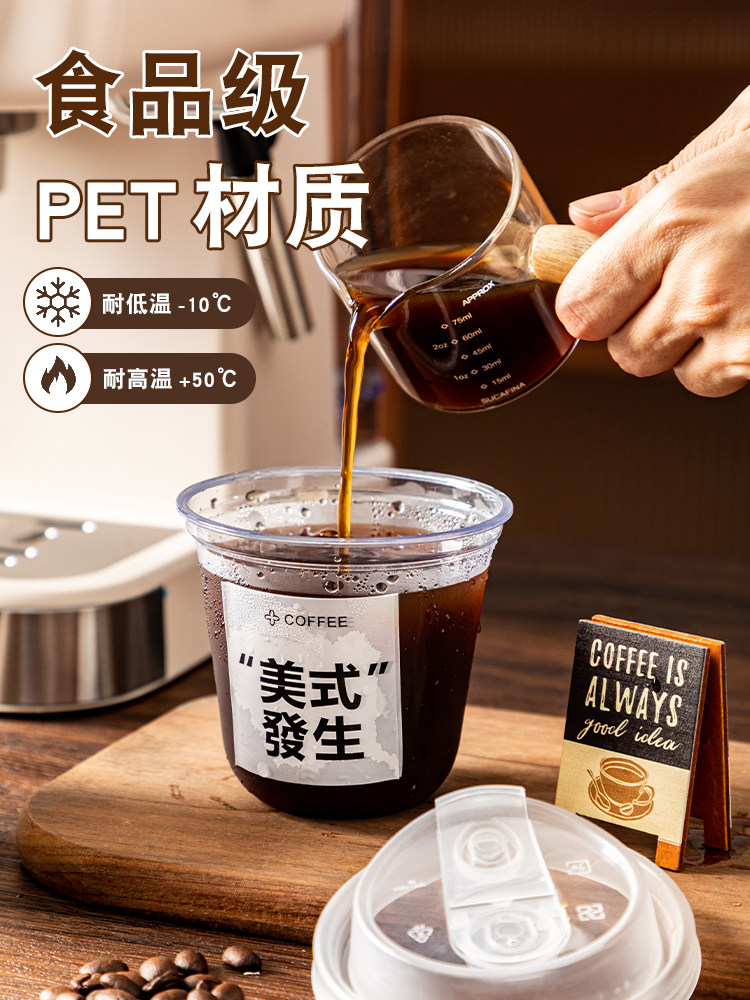 (特)一次性咖啡杯奶茶杯子带盖塑料透明饮料杯家用加厚密封外出携带