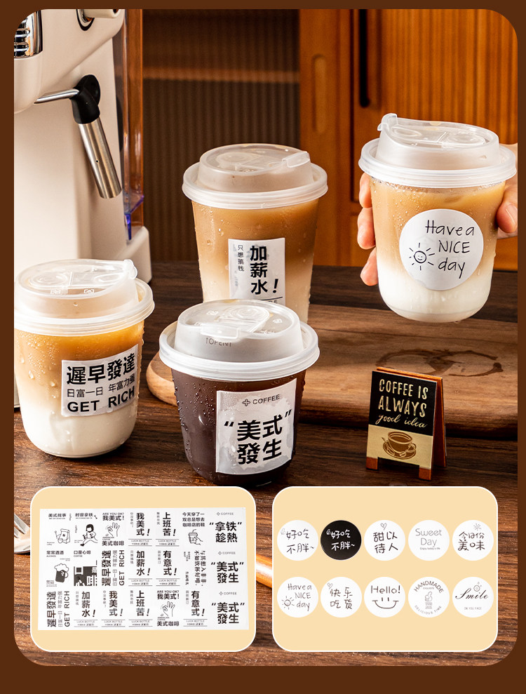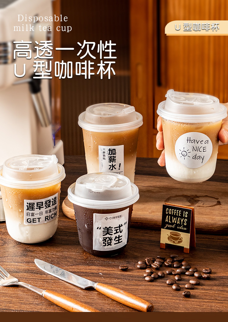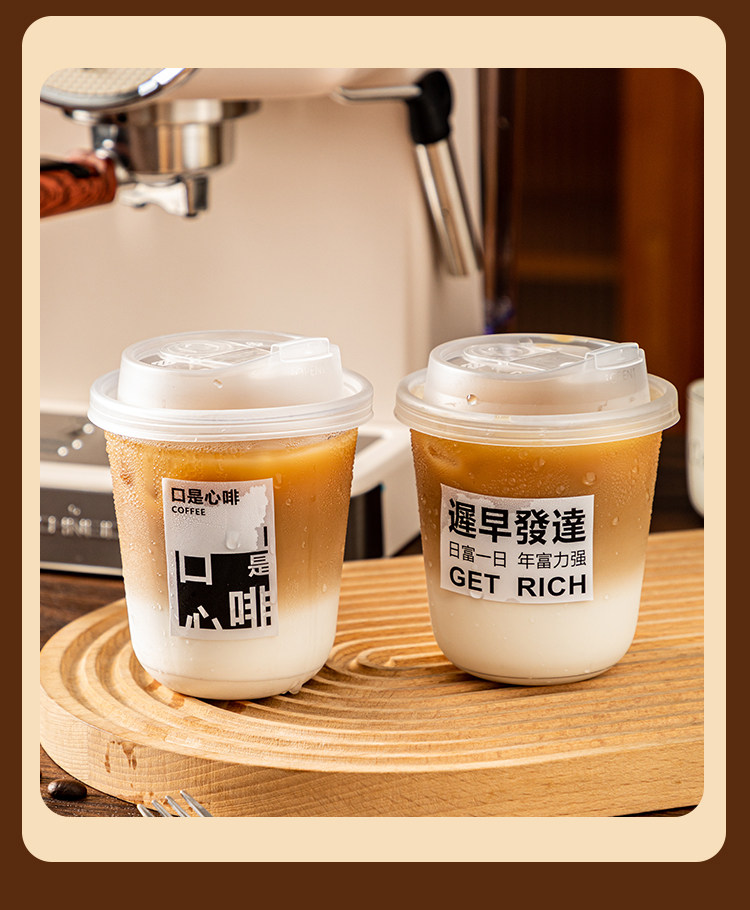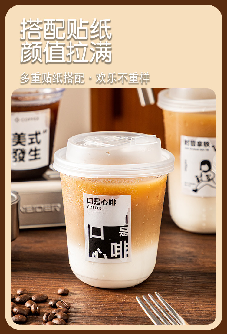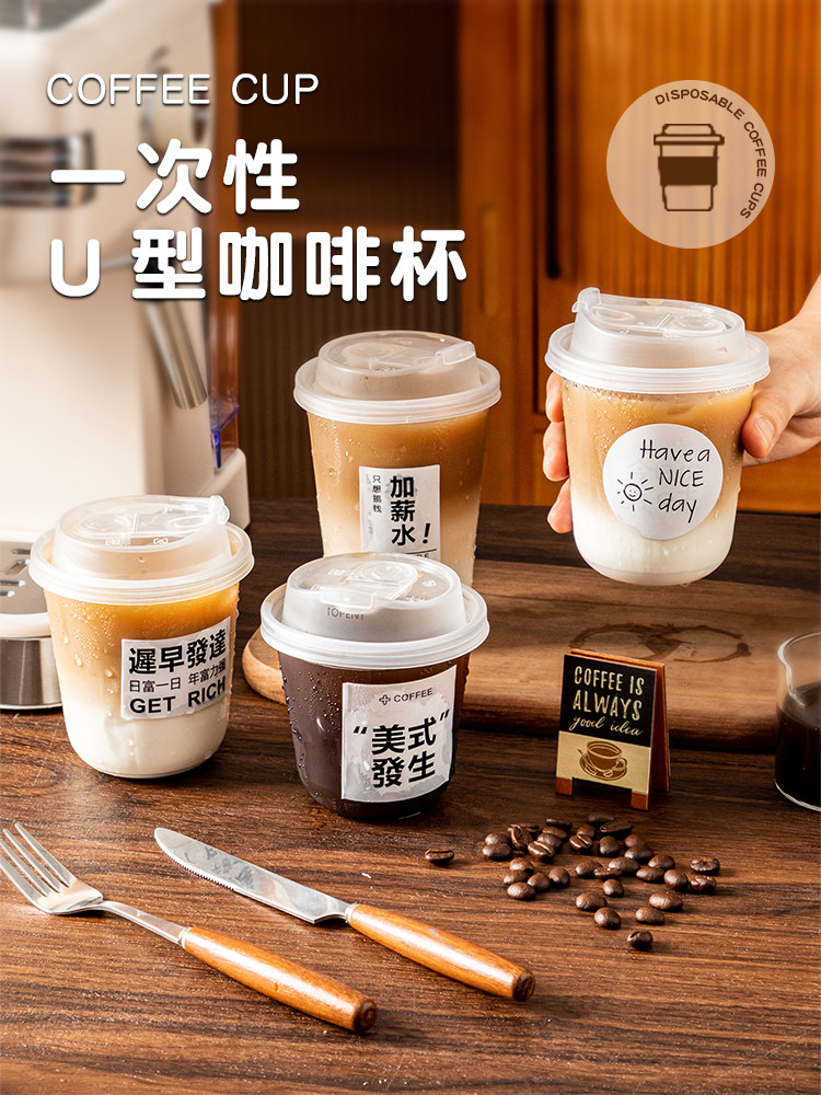 (特)一次性咖啡杯奶茶杯子带盖塑料透明饮料杯家用加厚密封外出携带