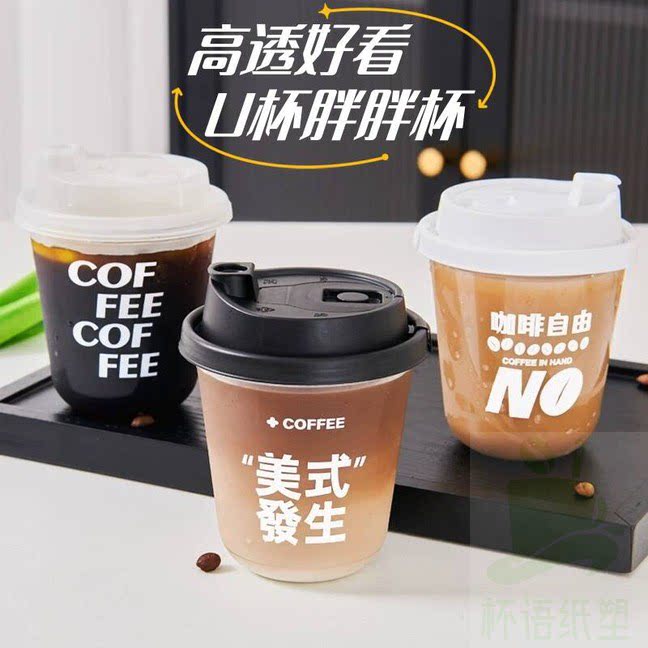 (特)一次性U型杯奶茶杯咖啡杯胖胖杯摆摊鸡尾酒杯少量商用U杯