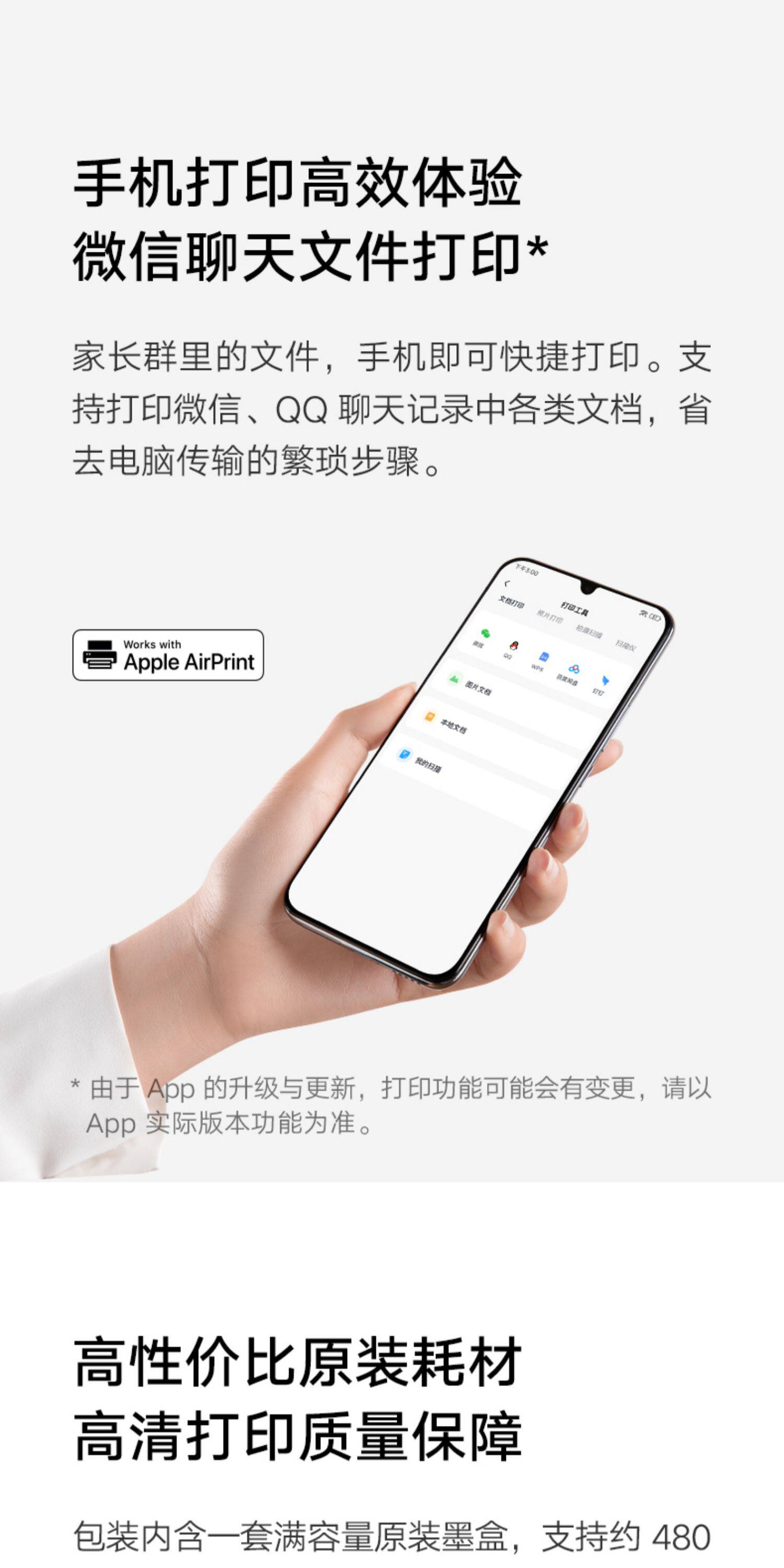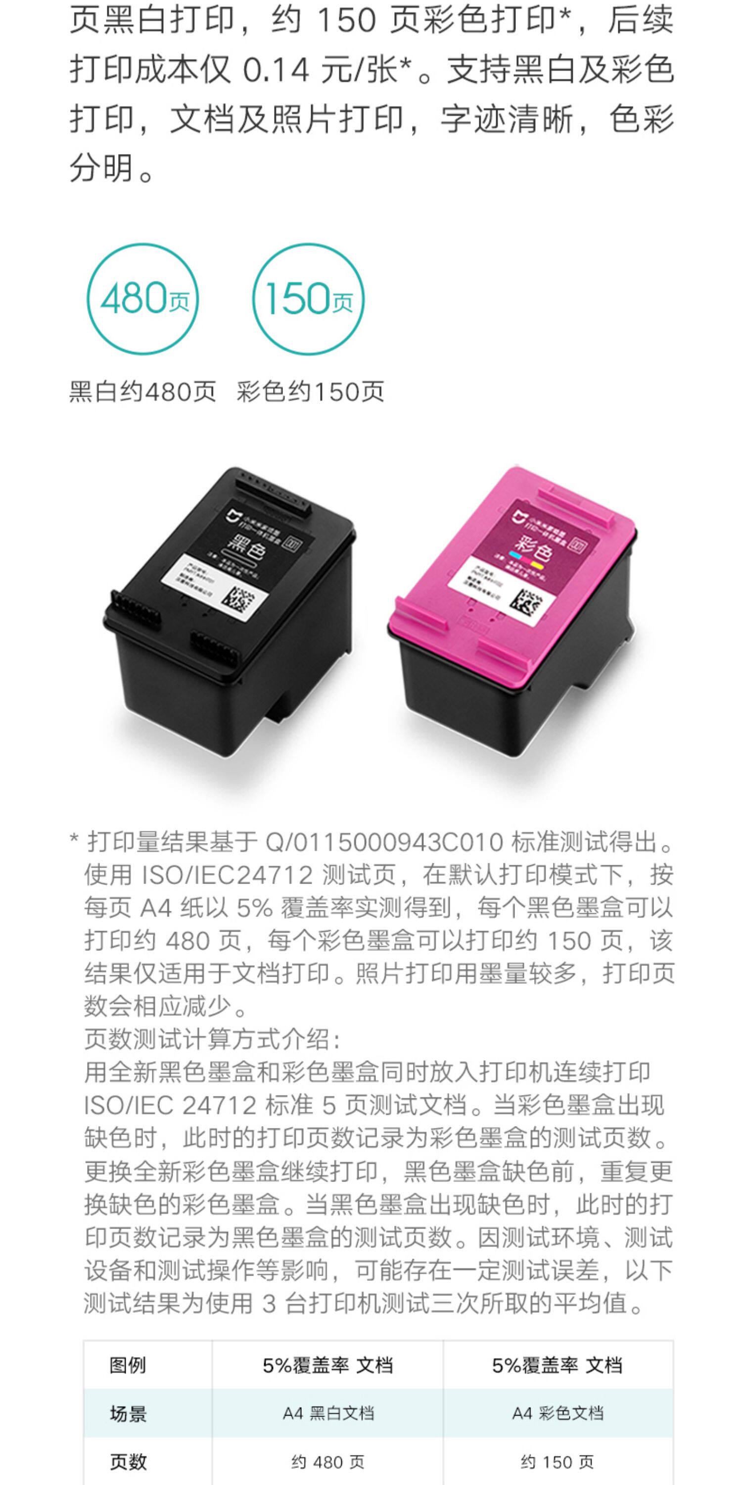 - 规格:小米喷墨打印机(内含黑色墨盒*1,彩色墨盒*1)