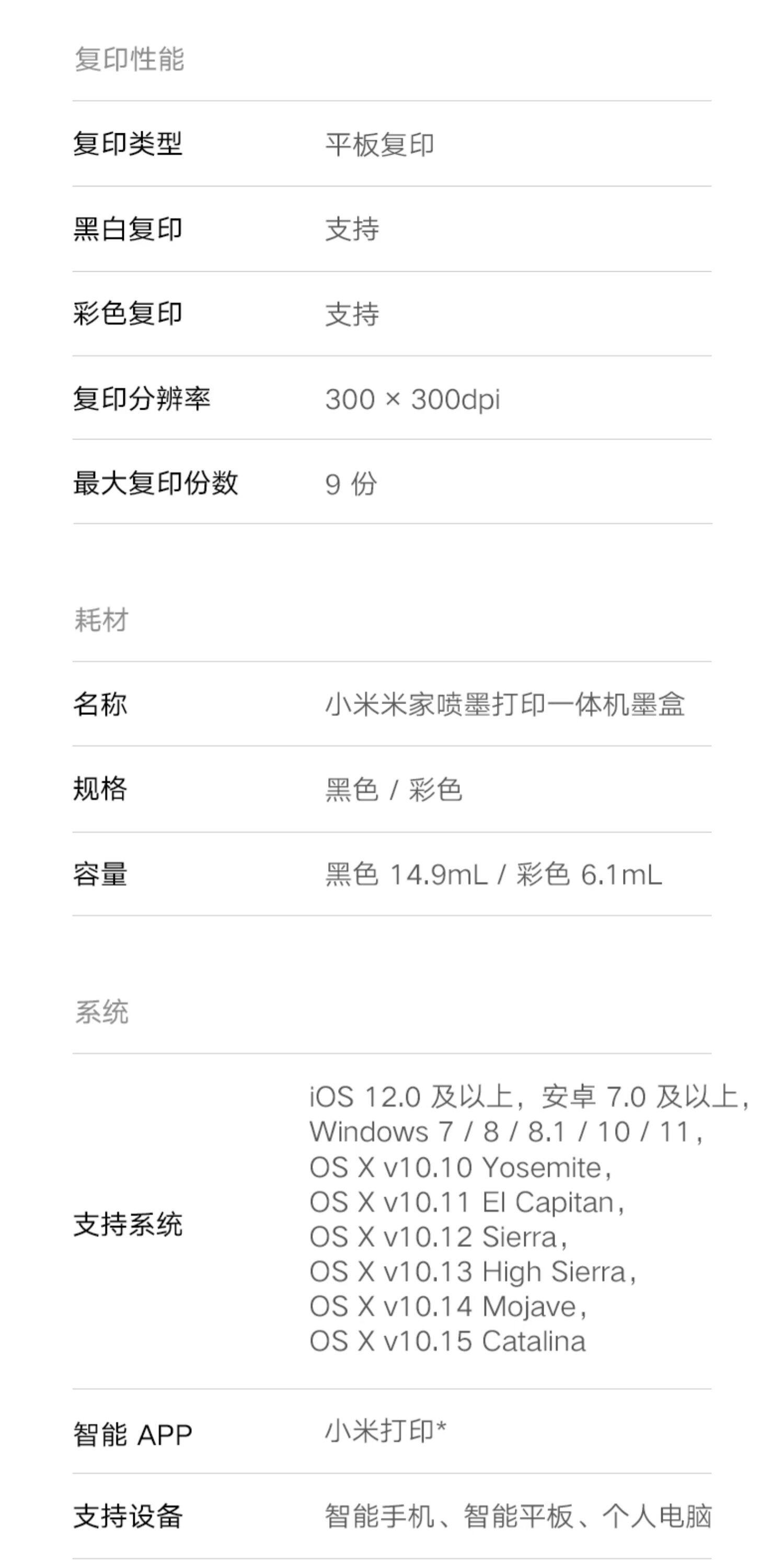 (特)小米米家喷墨打印一体机多功能复印扫描彩色打印家庭办公打印机A4