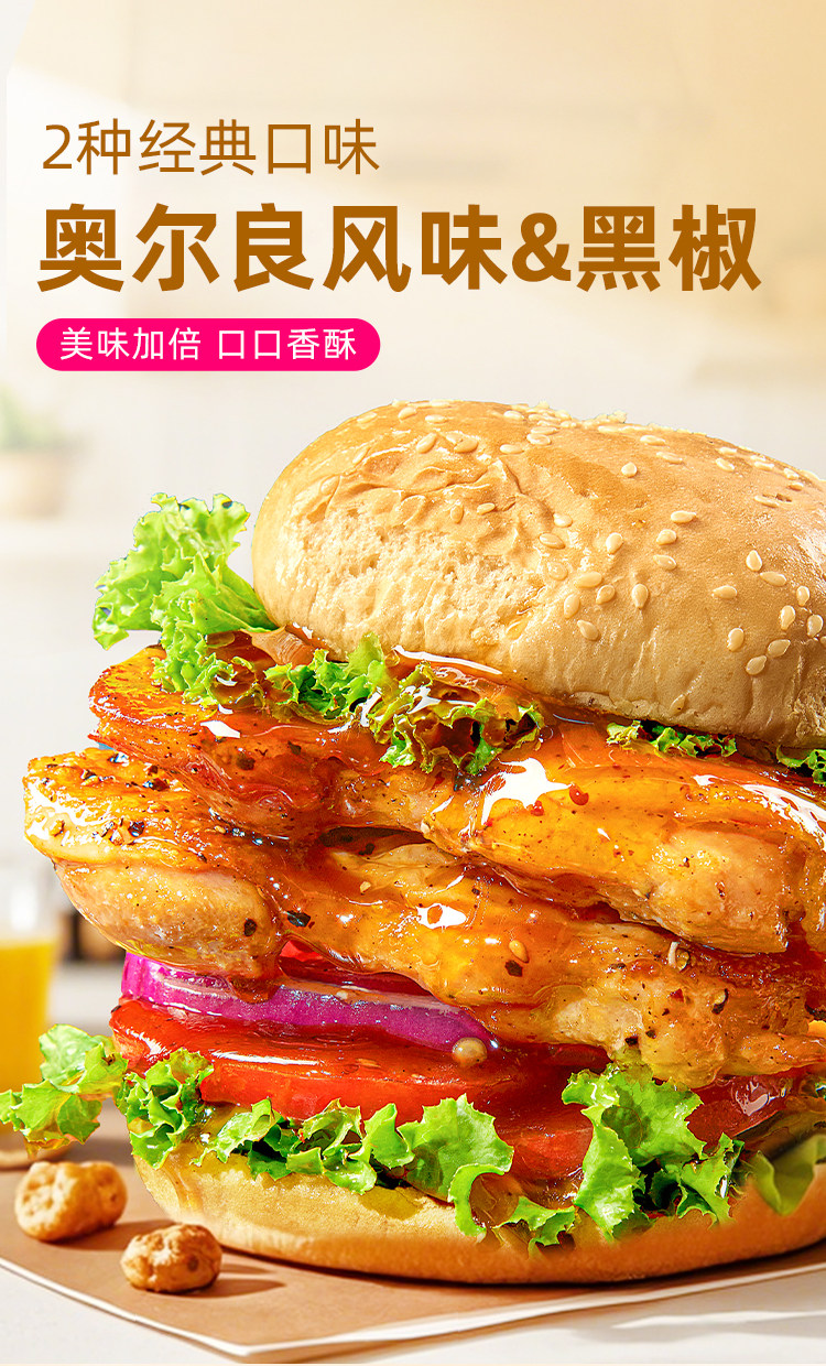 (特)食者道奥尔良鸡排汉堡鸡腿排肉排冷冻半成品黑椒鸡扒空气炸锅食材
