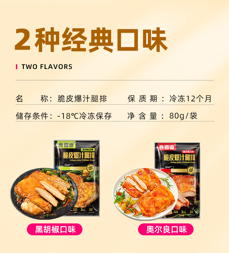 - 规格:【10袋】爆汁鸡腿排80g(奥尔良)(800g)