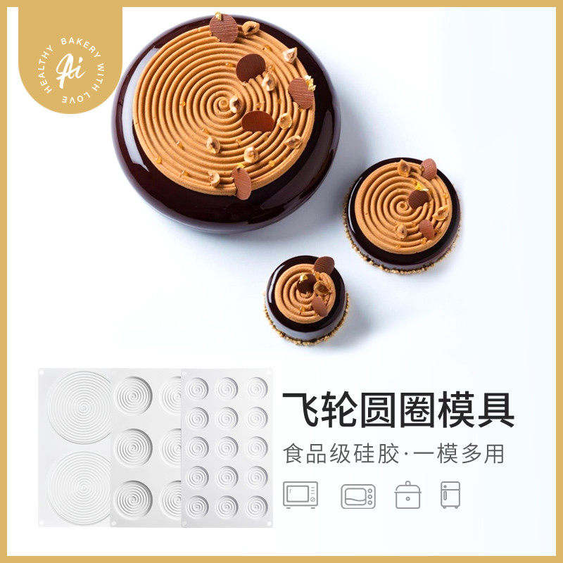 (特)AiChef陀飞轮蚊香状螺纹形圆圈法式慕斯蛋糕装饰硅胶翻糖烘焙模具