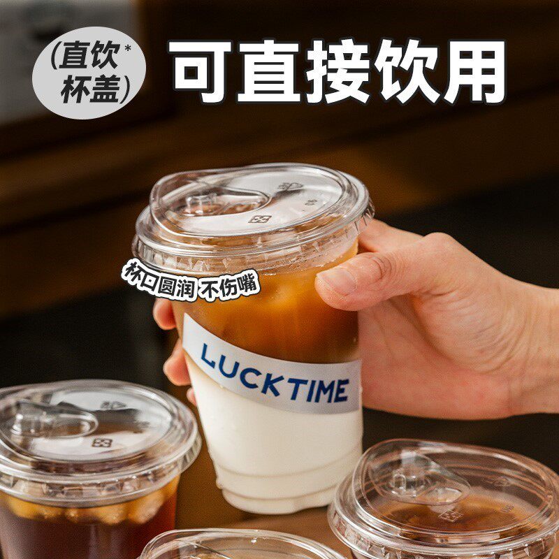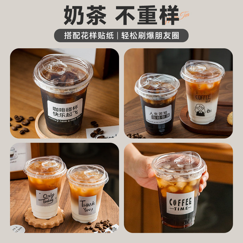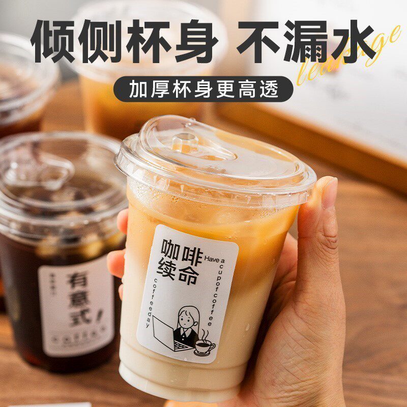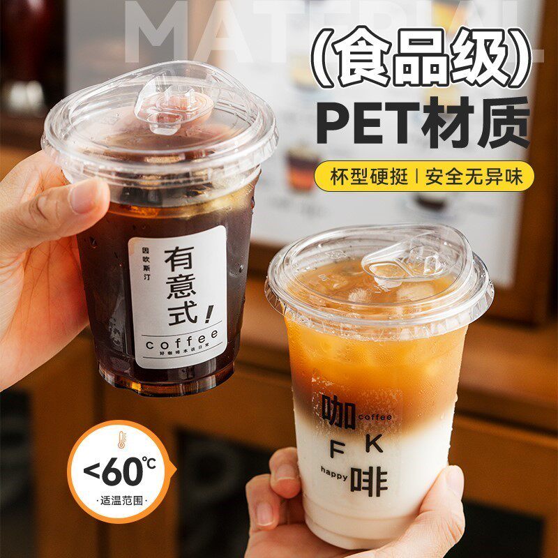 (特)一次性咖啡杯带盖冷饮杯冰杯专用打包外带pet塑料杯子商用果茶杯